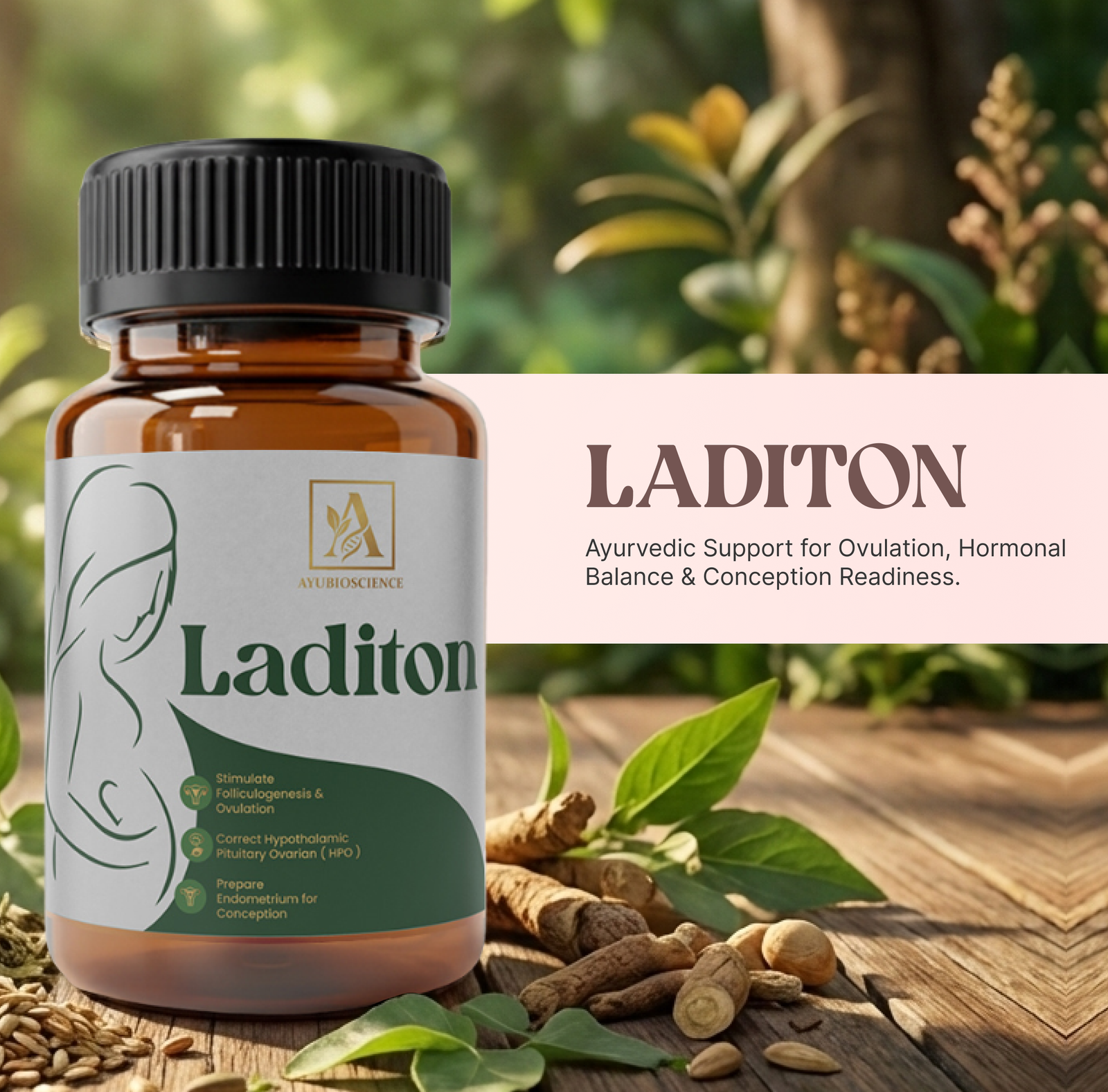 Laditon is a premium Ayurvedic formulation designed to support female reproductive wellness, hormonal balance, and fertility health. It helps support the natural processes involved in ovulation, uterine health, and reproductive balance.