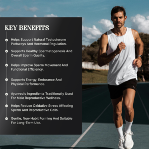 A premium Ayurvedic formulation created to support male vitality, stamina, and reproductive wellness by nourishing body tissues, balancing hormones, and improving long-term energy and confidence naturally.
